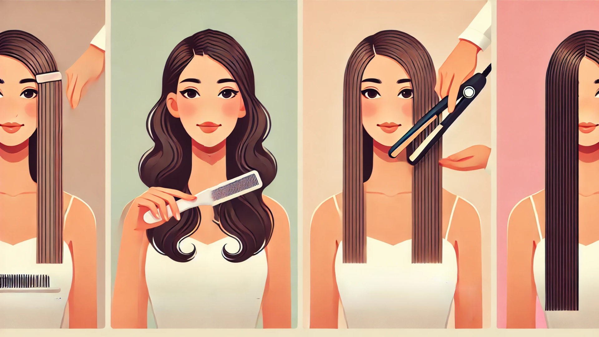 縮毛矯正は、薬剤と熱を使って髪のくせを伸ばし、ストレートヘアを長期間維持する施術です。